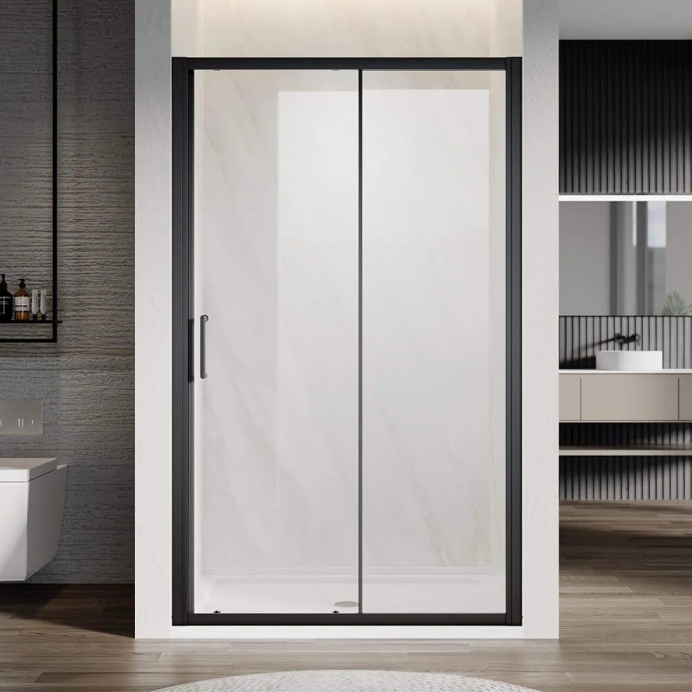 Glass options also play an important role. Clear glass highlights the frame itself, while frosted or textured glass adds privacy without sacrificing style. No matter the choice, the shower door black frame remains the defining feature.